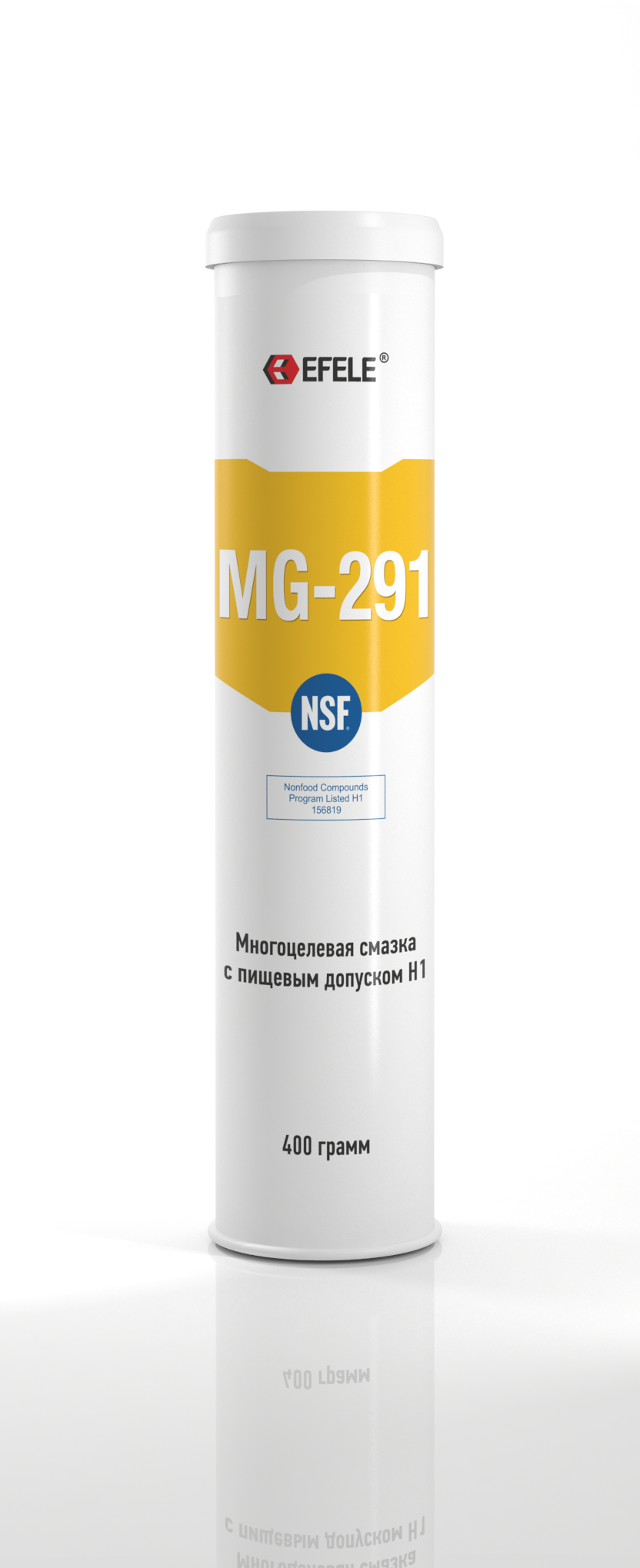 EFELE MG-291 – смазка с пищевым допуском. Задействуется при обслуживании техники фармацевтической, пищевой, комбикормовой промышленности, а также в других направлениях, где требуется использование составов категории NSF H1. Веществом обрабатывают подшипники, направляющие качения и скольжения, рабочая температура которых – от -20 до +120 °C. Также смесь используется в автоматических контурах подачи смазки. Обрабатываемые пары трения: металл/металл, металл/пластик. MG-291 не имеет запаха, отличается хорошими антикоррозийными, противоизносными и противозадирными показателями.
