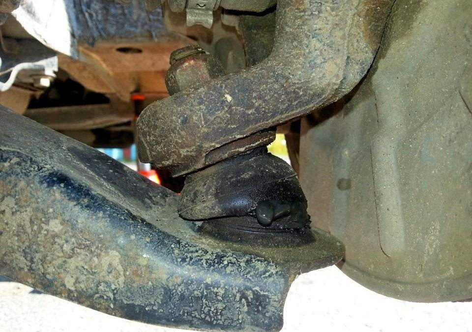 Также следует обращать внимание на состояние защитного резинового чехла (пыльника) — нужно периодически осматривать его на наличие трещин и разрывов. Даже небольшая трещина приведет к выдавливанию смазки и попадания внутрь чехла грязи, и, как следствие — к интенсивному износу шаровой опоры и резкому сокращению ее ресурса