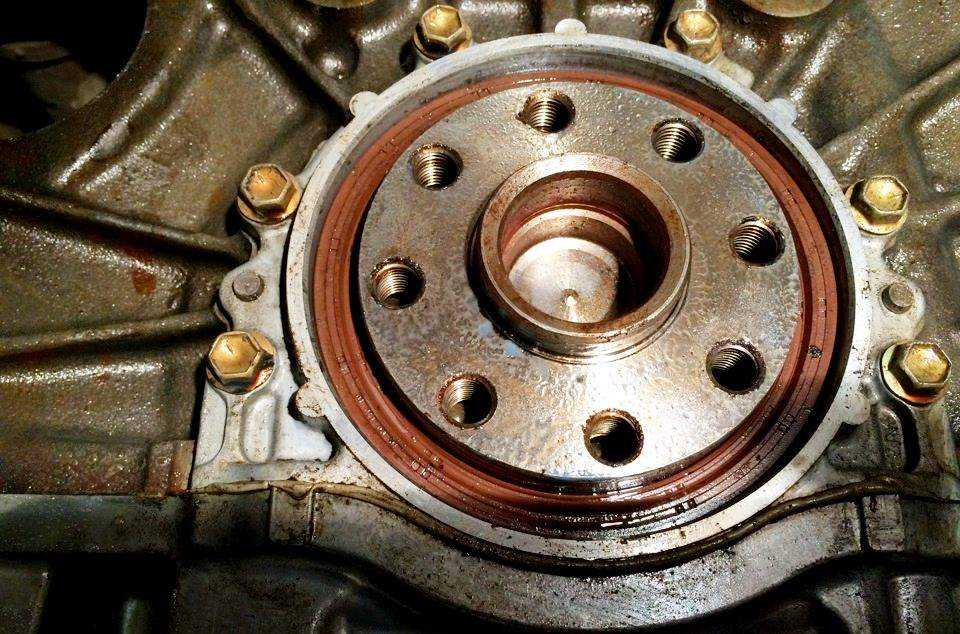 Он крепится через тонкий уплотнитель к корпусу мотора. Встречается на моделях А4, Q7 и других. В конструкции трапециевидного фланца предусмотрен сальник, который приклеен с завода. Когда резина начинает отходить от металла, возникают утечки.