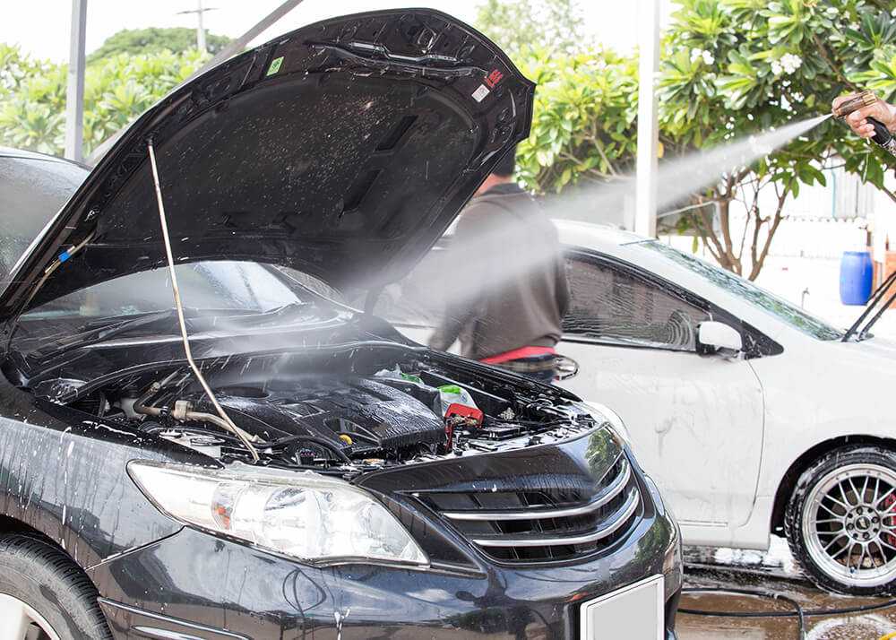- Мойка водой. Лучше убирает загрязнения, однако на большинстве сервисов, при обращении клиенту сообщают, что не несут ответственности, если после процедуры транспортное средство перестанет заводиться. Для безопасности можно использовать несколько несложных советов: