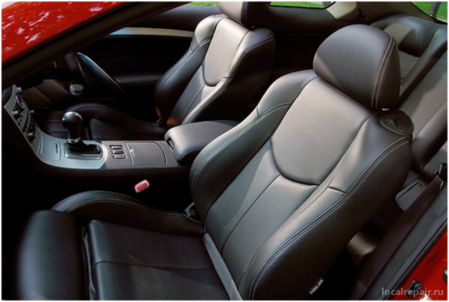 - восстановление салона. Это может быть как полная перетяжка, так и реставрация при помощи ремонтного состава (жидкая кожа) и окрашивания. Свидетельством отличного качества, характеризующегося эластичностью кожи, является образование складок при длительной эксплуатации. Убрать их можно, расшив сидение, натянув материал по внутреннему наполнителю, а затем обратно сшив.