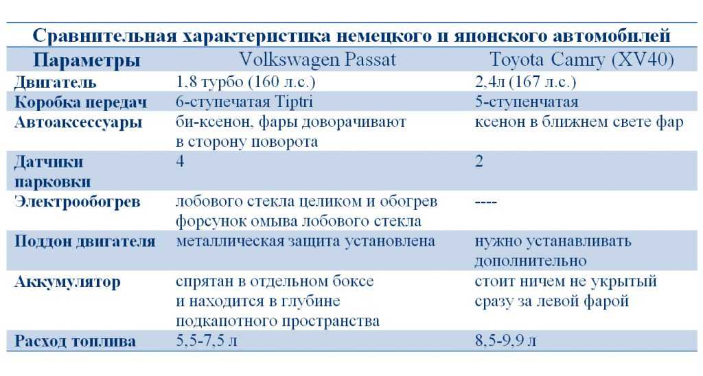 Немецкий автопром отдаёт предпочтение турбодвигателям, незаслуженно отставив в стороне дизели и атмосферники. Последние можно встретить разве что в авто бюджетного плана. А дизели хоть и встречаются в продаже, россиян почему-то особо не привлекают. Сравним модели VW Passat B6 и Toyota Camry XV40 одного года выпуска.