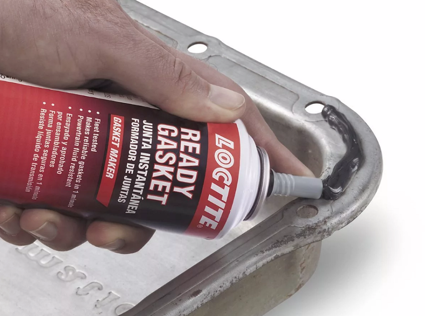Этот термостойкий состав затвердевает при комнатной температуре. Герметик отличается устойчивостью к автомобильным маслам и охлаждающим жидкостям. Часто применяется при обработке картера мотора и фланцев. Стоит порядка 1 200 рублей.