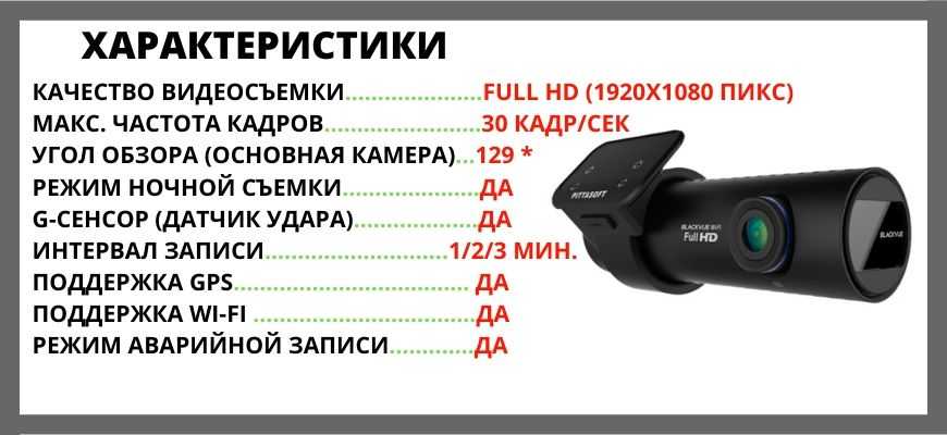 - циклическая непрерывная запись видео HD или FullHD (при частоте кадров тридцать в секунду) в формате МР4;