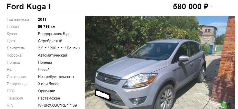 Средняя стоимость б/у Kuga первого поколения — 705 тыс. рублей. За 580 можно купить автомобиль 2011 года с мотором 2,5 л:
