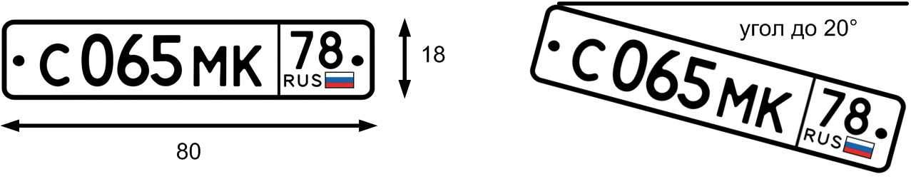 Рис. 6. Рекомендованные значения размеров и угла наклона изображения номера