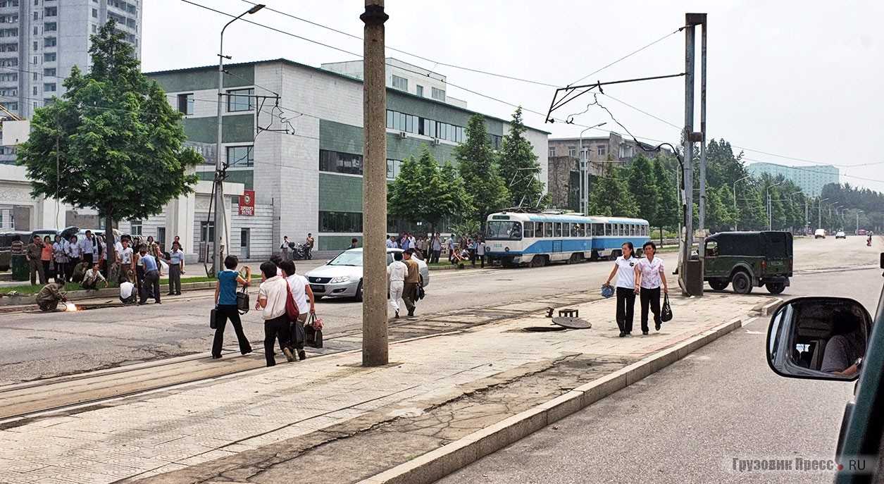 Пользуются общественным транспортом лишь корейцы. Попасть в салон трамвая или троллейбуса иностранцам не дадут гиды, составляющие ежедневный почасовой досуг для своих подопечных, исключая непредвиденные контакты с местным населением. Примечательно, что даже во время обязательной для всех поездки по центральным станциям пхеньянского метрополитена, покупка билетов исключена.