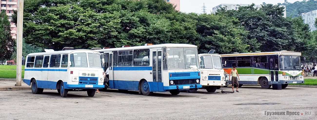 О былом господстве автобусов в Пхеньяне свидетельствуют редкие архивные фотографии 1950-х годов, где отчётливо видны советские ЗИС-155 и чехословацкие Škoda 706 RO с прицепами. Их значительно потеснили троллейбусы, линии которых проложили по основным центральным улицам в 1960-х годах. В 1970-х годах на городских маршрутах появились венгерские автобусы Ikarus-260, а с 1980-х – чехословацкие Karosa 731 и Karosa 734, многие из них работают до сих пор. В центре города осталось много остановок с внушительным перечнем маршрутов, но самих автобусов нет. Отмена внутригородских маршрутов произошла почти 20 лет назад во время топливного кризиса, когда все перевозки в центре были распределены между троллейбусами, трамваями и метро.
