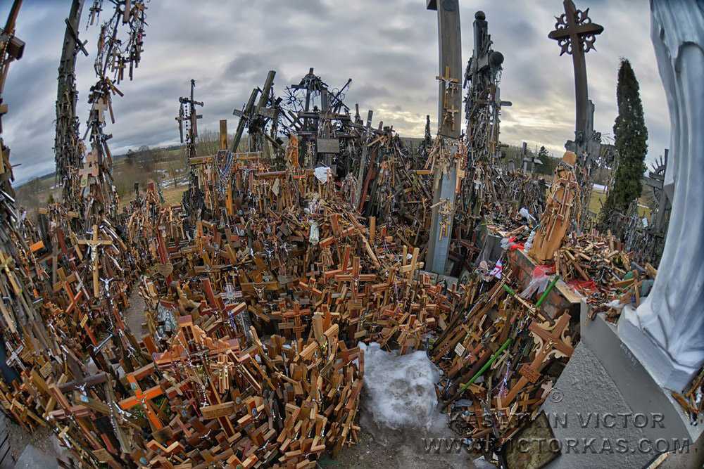 Место окутано легендами. При советской власти его уничтожали 4 раза, но Гора никуда не делась, а крестов становится все больше и больше. Даже Папа Римский «отметился» здесь довольно внушительным крестом. Наши крестики, как капельки воды, растаяли в море огромных волн из крестов.