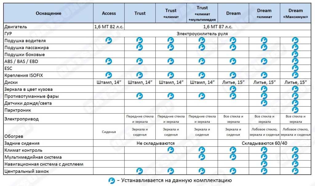 | 1.6 Trust I MT | 462 000 | бензин 1.6 (87 л.с.) | механика (5) | передний |