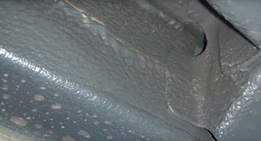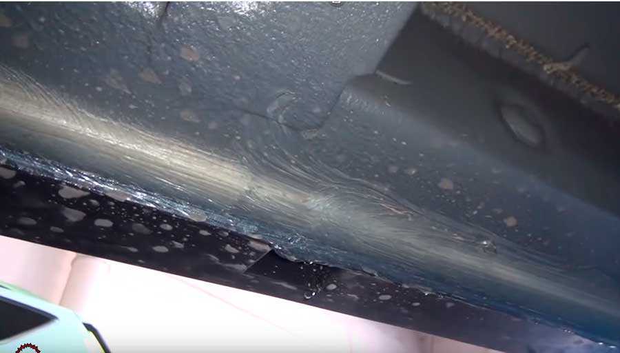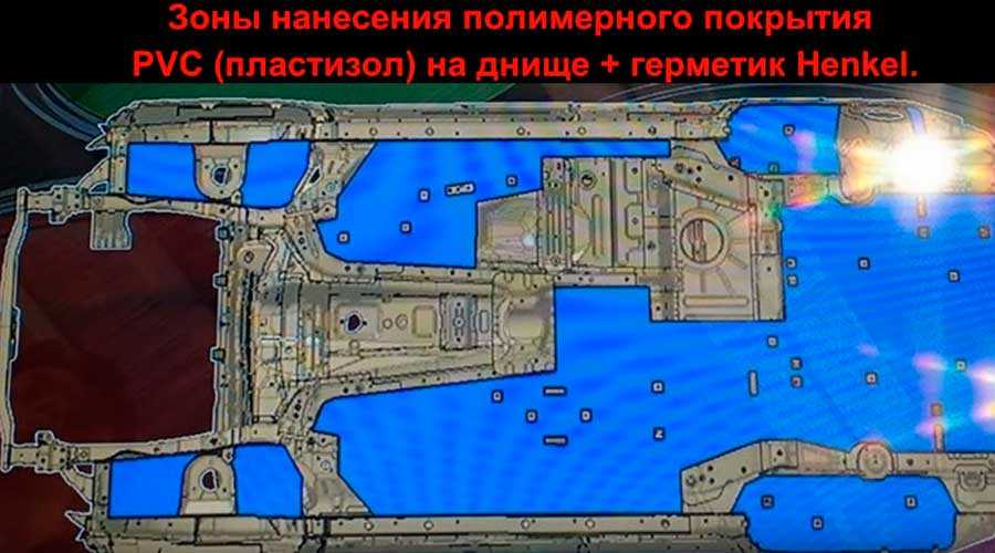 С завода днище автомобиля обрабатывается антигравием где-то на 90-95 %, присутствуют лишь небольшие пропуски защитного материала в скрытых полостях, местах крепления коробки передач, кардана (у полноприводных машин), рычагов задней подвески.