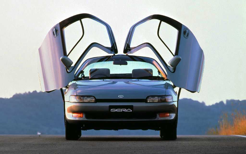 На первый взгляд Toyota Sera типичный (для Японии естественно) спорткар 90-х. Однако внешность не соответствовала содержанию. Под капотом Sera скрывался маломощный 1,5-литровый 110-сильный двигатель. Это тем более удивительно, учитывая то, как открываются двери. Они эффектно распахивались вперед, словно крылья бабочки, обеспечивая очень удобный доступ в салон. Никакой супер-кар того времени не мог похвастаться такими роскошными дверьми.