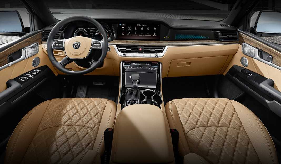 Сиденья салона драпируются кожей наппа. Кроме того можно выбрать чёрную или коричневую отделку салона. Стоимость внедорожника в максимальном наполнении – 2,920 млн. рублей.
