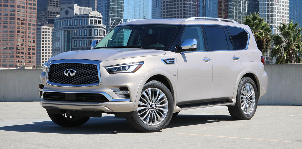 Возглавил наш рейтинг — Infinity QX80, который способен удивить всех не только своими габаритами, но и отличной проходимостью. В результате рестайлинга гигант обрел более современный кузов, который теперь не выглядит так уныло и строго, как это было у предшествующей модели. Салон подвергся минимальным изменениям, но стоит отметить, что там итак всё хорошо — кругом настоящая кожа и самые качественные материалы, вроде дерева и металла.