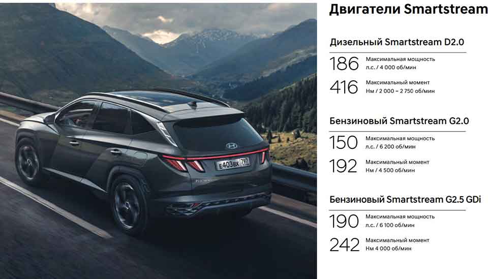 Российским покупателям новый Туссан представлен тремя различными типами 4-цилиндровых рядных двигателей: