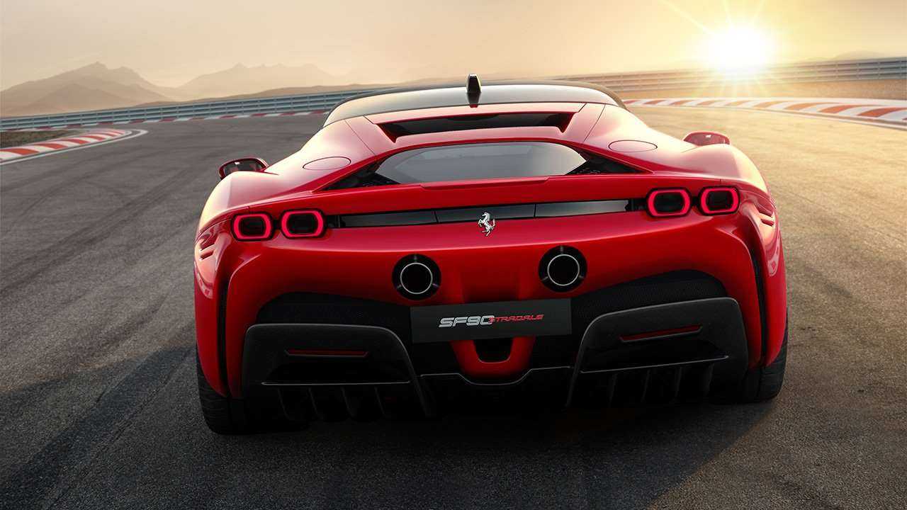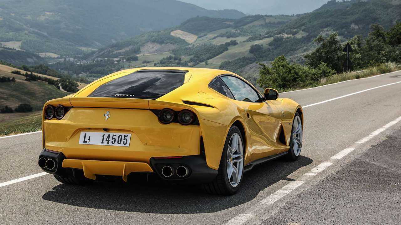 Сзади 812 СуперФаст имеет углубленные внутрь формы, что конечно же добавляет агрессии. Установлены 4 круглые светодиодные фары, над которыми расположилось небольшое антикрыло. Задний бампер получил массивные формы, пластиковые расширители, 4 патрубка выхлопной системы и огромный диффузор.