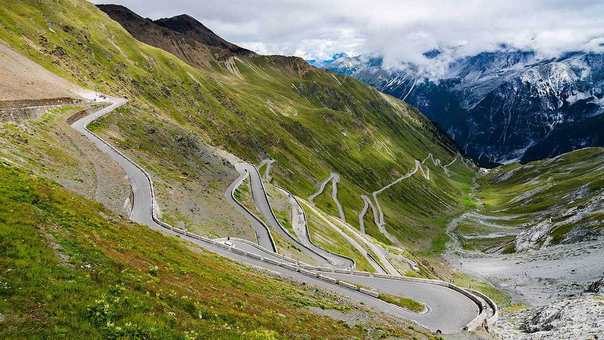 Перевал Стельвио находится в Италии на высотах 2758 м и по праву является самым возвышенным перевалом с асфальтированной дорогой во всей восточной части Альп. Эта трасса по большей части привлекает именно своей извилистой структурой. Во время поездки по этой дороге смешиваются несколько чувств – восхищение пейзажами и страх поворотов. Потому не каждый сможет преодолеть свой страх и проехать по узенькой дорожке, которая находится практически над пропастью.