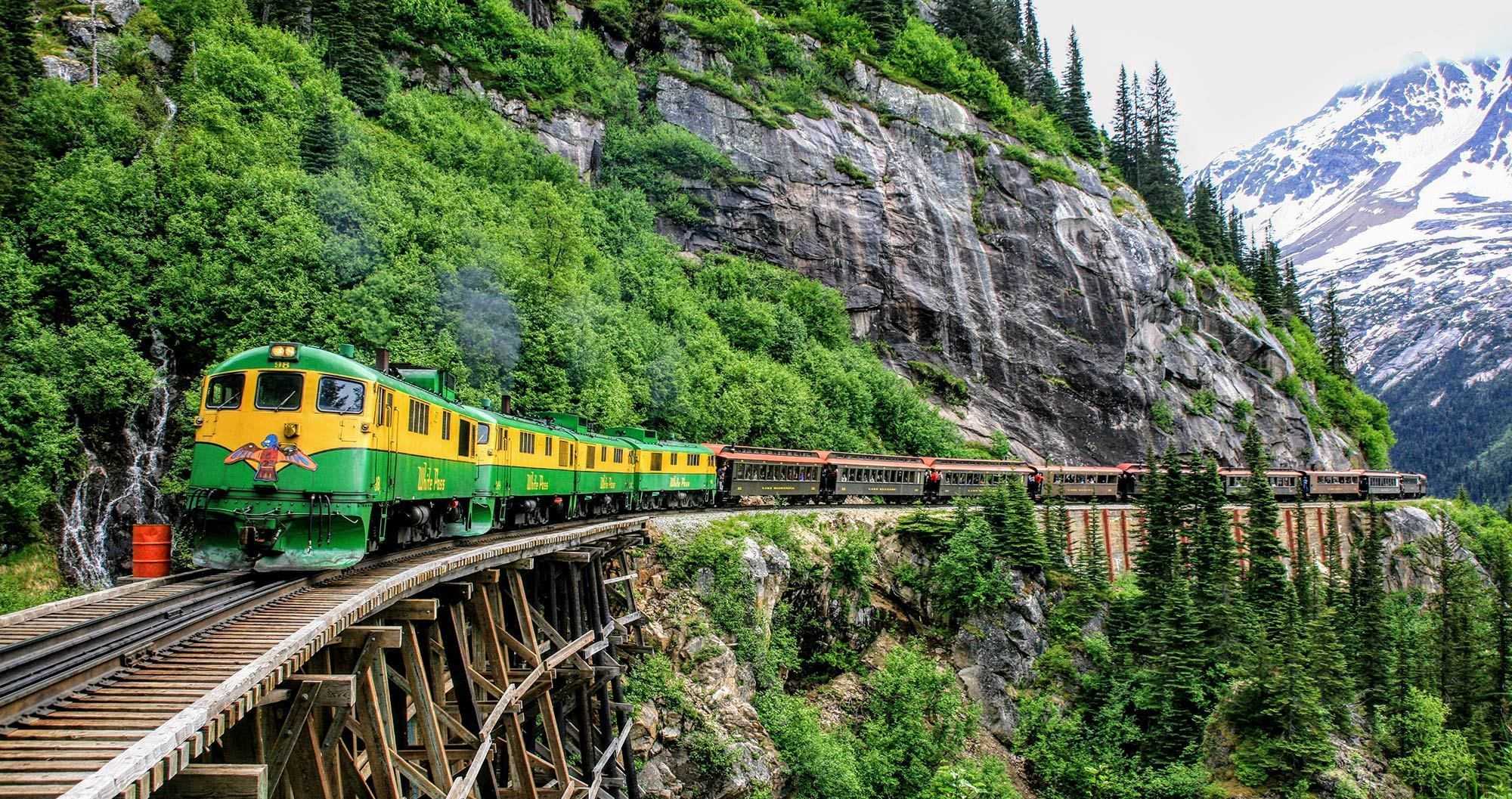 Узкоколейный маршрут между Уайтхорсом в Юконе и Скагуэй на Аляске имеет протяженность 175 километров и строился во времена «золотой лихорадки», когда людям необходимы были пути доставки до мест поиска золота. На работы ушло 2 года, наиболее сложным участком пути был перевал Уайт. Сегодня используется как достопримечательность.