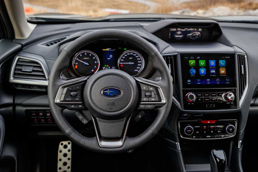 Если говорить про салон автомобиля, то здесь отчетливо виден индивидуальный дизайн марки Subaru. Все основные элементы размещены одновременно практично, и в то же самое время как-то иначе, в сравнении с непосредственными конкурентами.