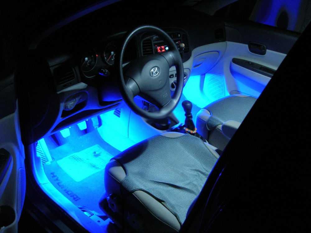 Внутренний световой тюнинг авто своими руками можно провести двумя способами: лентой из светодиодов и неоновыми лампами.