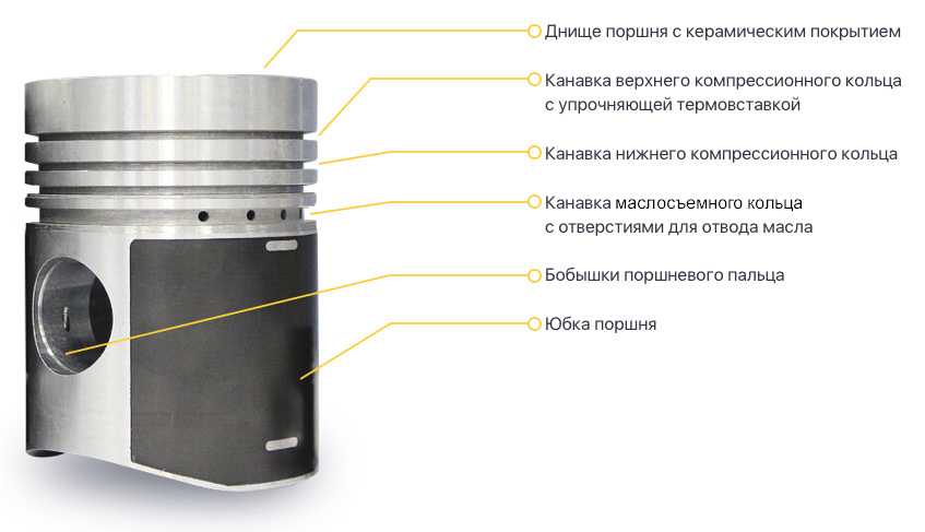 Обсудим основные детали поршня, более подробно устройство поршня можно рассмотреть на схеме.