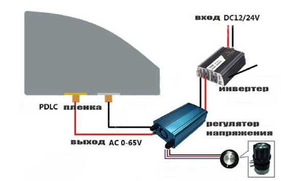 При установке PDLC пленки контроллер подключается к стеклу вручную. Для этого два медных контакта приклеиваются к пленке, с помощью серебряной пасты, и припаиваются к блоку питания, с переменной подачей напряжения (110 В будет вполне достаточно). И только после сбора этой конструкции тонировку можно подсоединять к бортовому компьютеру автомобиля, через контроллер.