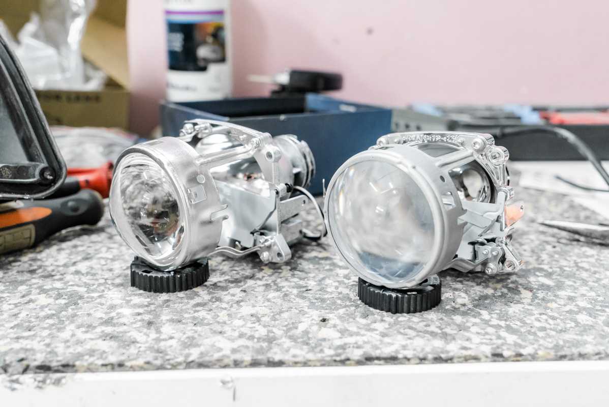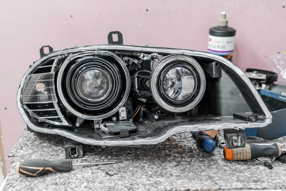 Собираем фары после замены линз и покраски.