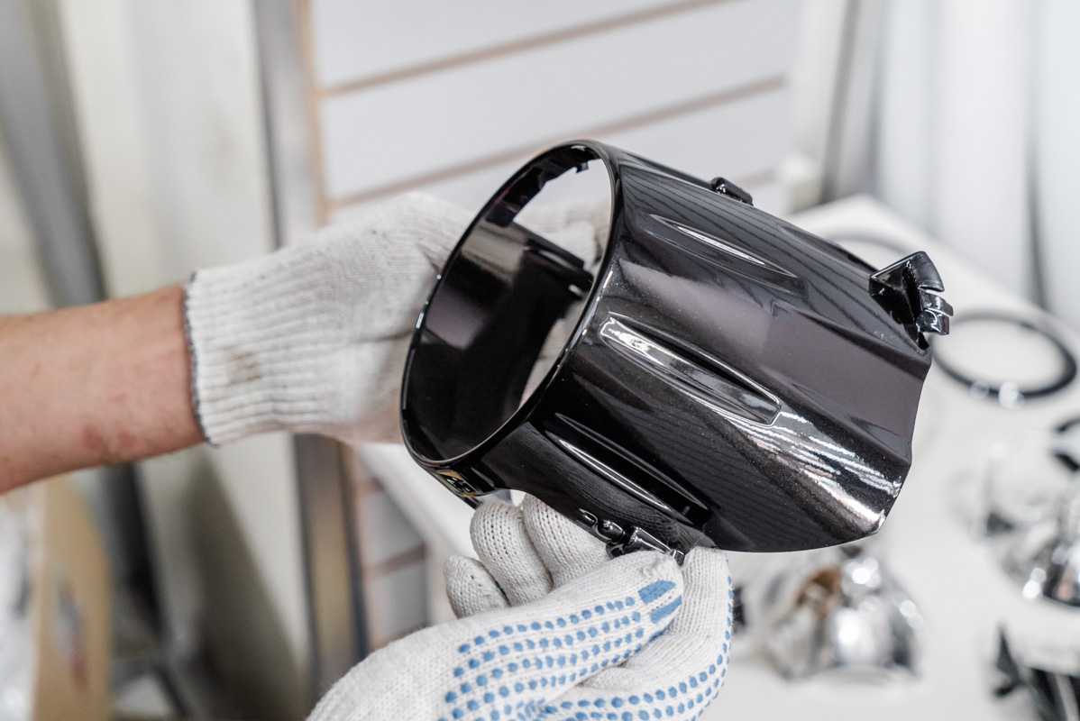 После удаления хромированного покрытия с отражателя фар BMW X5 E70 детали передаются в покрасочный цех, где на них наносится качественная черная глянцевая краска , которая не будет облезать на солнце и не потеряет цвет со временем – мы работаем только с премиальными материалами, предоставляя гарантию на итоговый результат.
