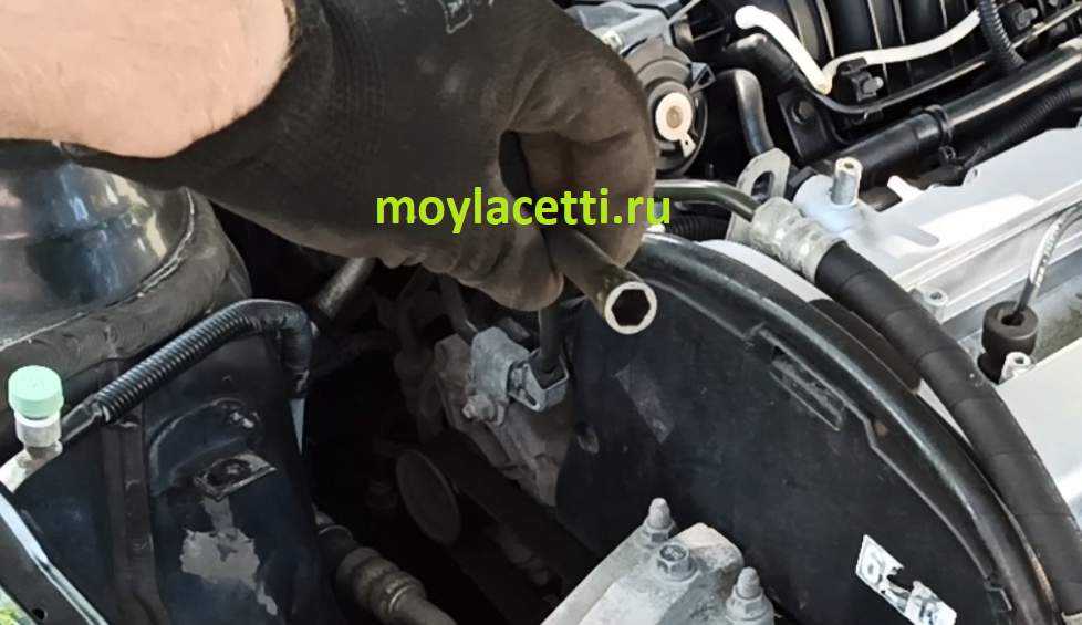 Откручиваем головкой на 12 мм гайку крепления кронштейна трубки гидроусилителя