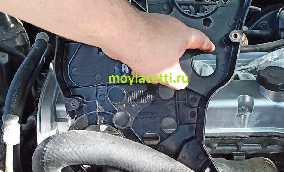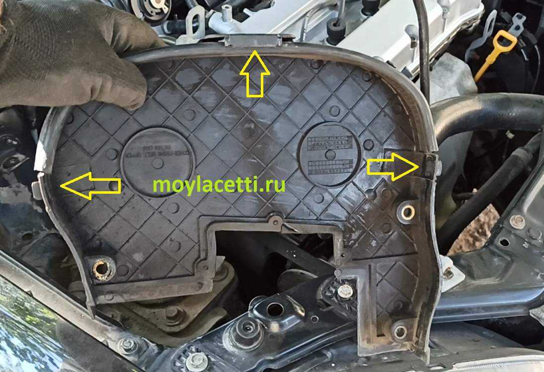 - Открутив крепежные болты нужно снять верхнюю и нижнюю крышку защиты ГРМ.