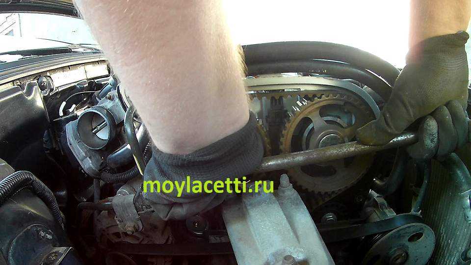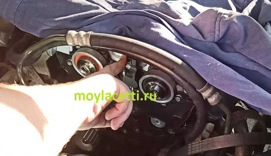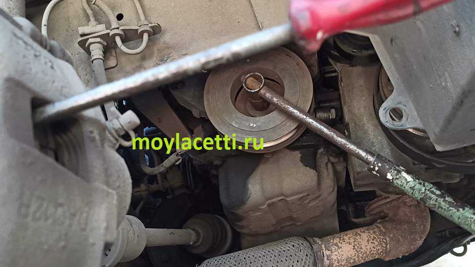 - Затем ремень снимается с шкива помпы, коленчатого и распределительных валов.