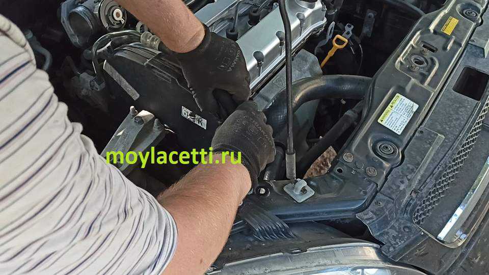 - Далее нужно снять впускной патрубок, ремень привода вспомогательных агрегатов.