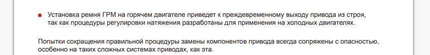 Давайте обратимся к производителю. Он нам утвердительно заявляет, что все узлы системы привода ГРМ изготовлены с учетом их установки и регулировки на холодном двигателе